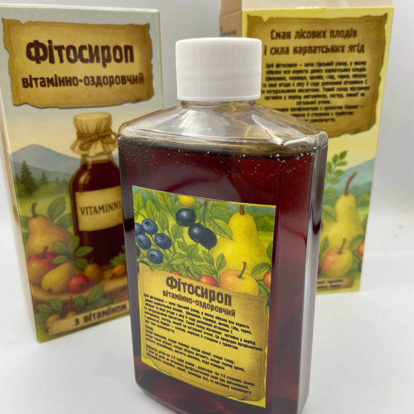 плоди шипшини, плоди чорниці, плоди аронії, плоди глоду, плоди груші лісової, плоди яблука лісового, плоди терену, цукор, аскорбінова кислота, лимонна кислота, вода очищена